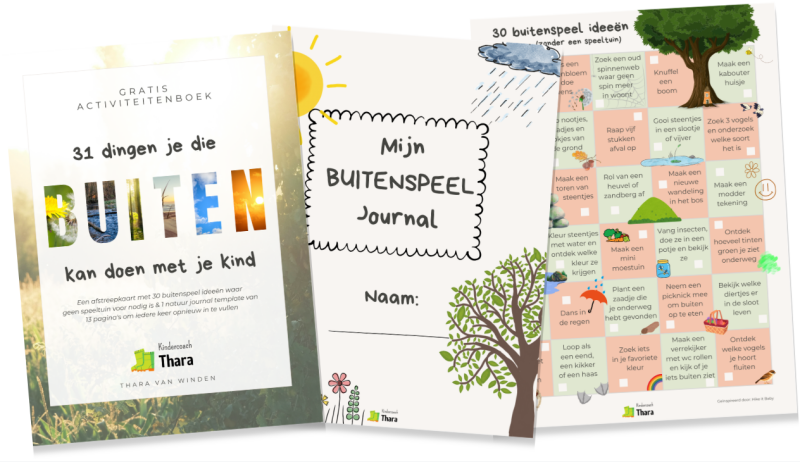 Ik heb een gratis activiteitenboek ontwikkeld waardoor je kind zeker weten naar buiten wilt. Geen discussies meer of iedere keer weer ideeën verzinnen voor wat je kind buiten kan gaan doen. Dit activiteitenboek gaat jullie helpen om het buiten spelen leuk, leerzaam en gezellig te laten zijn!